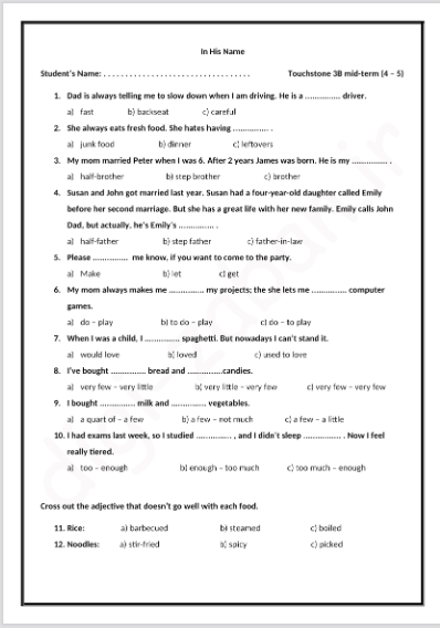 • فایل‌های نمونه سوالات تاچ استون 3 شامل دو بخش امتحانات میان‌ ترم(mid-term) و امتحان‌ پایانترم(final exam)  می‌باشند.